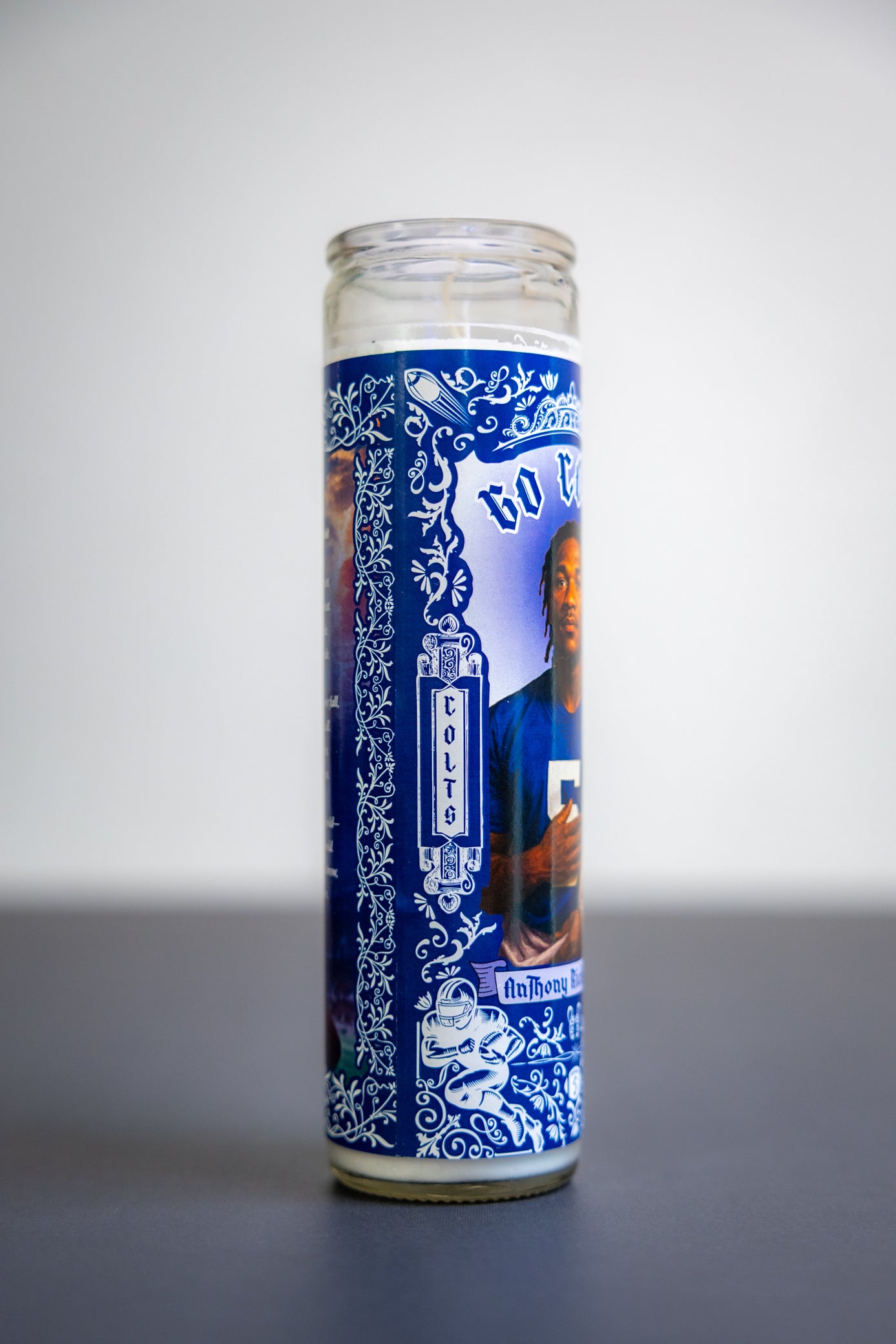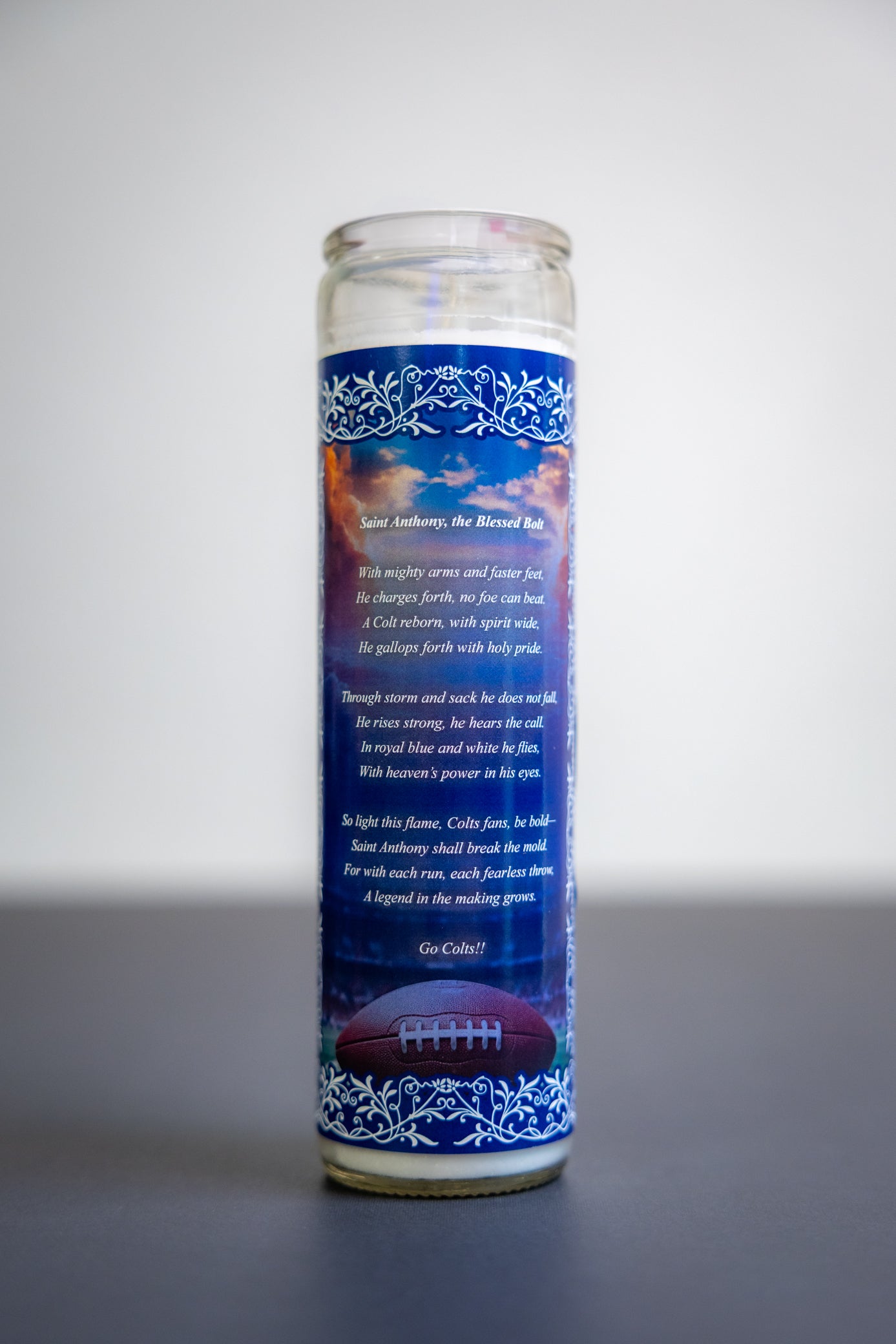 Anointed in blue and white, Anthony Richardson takes his place as Indy’s next gridiron saint. This NFL Prayer Candle features the Colts’ rising star in full divine form—haloed, heroic, and ready to deliver touchdowns with heavenly force. Light it up and let the football faith ride.
